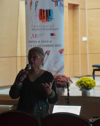 În același context, a fost evocată și problema partiturii, nu doar ca suport grafic, ci ca formă de gândire muzicală. Numeroși artiști, a amintit doamna profesor, își creează propriile stimme, adaptându-și partitura după nevoile vocii. A fost oferit ca exemplu piesa Speranțe-vis, speranțe-flori, pe textul Andreei Andrei – lucrare analizată în detaliu de studenta Giulia Ioana Sumănaru, masterandă în anul II la specializarea Muzicologie.