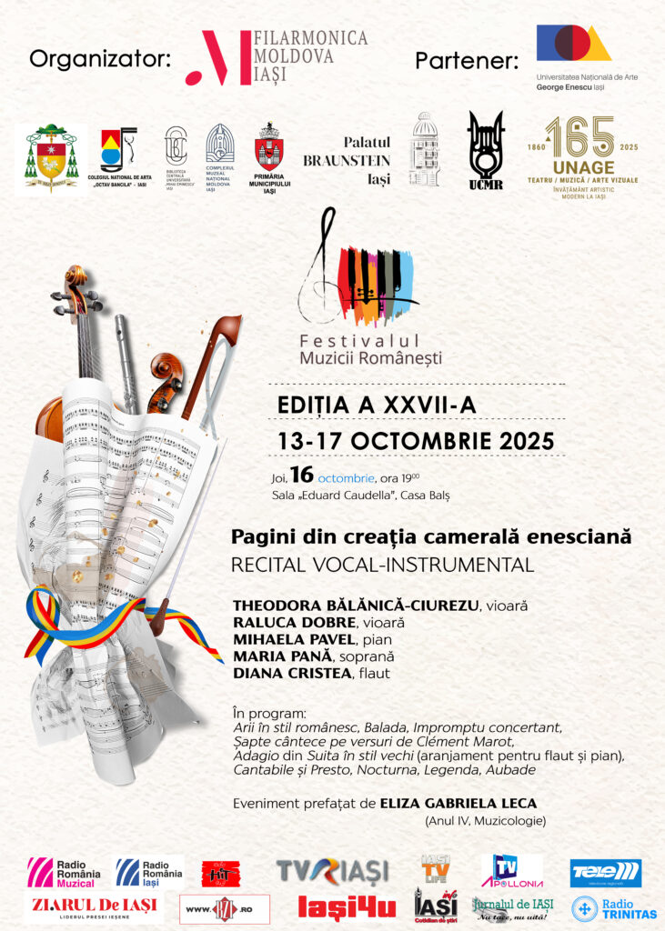 După patru zile intense, marcate de evenimente precum Caleidoscop componistic, Muzica de cameră în creația compozitorilor ieșeni, Muzica saloanelor boierești de veac XIX – Restituito Carol Mikuli, Luiza Zan Symphonic sau Bucharest Percussion Ensemble, publicul ieșean s-a bucurat de un moment de rafinată introspecție sonoră: recitalul Pagini din creația camerală enesciană, dedicat geniului artistic al compozitorului George Enescu.