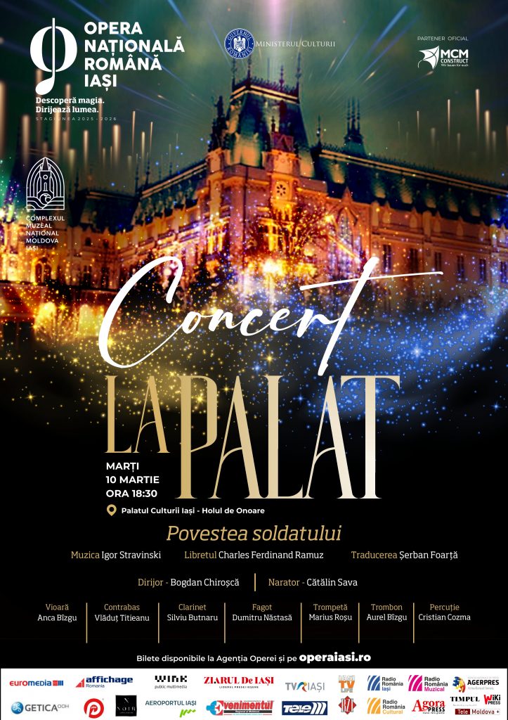 Așa cum marile povești nu au nevoie de scenă, ci doar de cineva care să le spună și de altcineva dispus să le asculte, există lucrări muzicale care nu se lasă ușor încadrate în tipologiile de gen și spectacole care nu necesită decoruri elaborate, ci… oameni. Povestea soldatului de Igor Stravinski este un astfel de caz, iar includerea sa în stagiunea Operei Naționale Române din Iași, pe 10 martie 2026, în Holul de onoare al Palatului Culturii din Iași, a confirmat aceste idei, prinzând viață într-o ipostază simplificată, dar deosebit de puternică. Prezentată într-o formulă de concert ce a pus în prim-plan textul și muzica, lucrarea a beneficiat de o versiune interpretativă concentrată asupra desfășurării sonore în relație cu detaliile narațiunii și importanța mesajului transmis, propunând o experiență diferită, dar cu mult impact asupra publicului prezent.